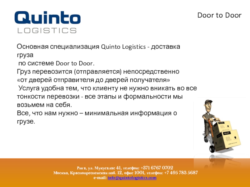 Груз перевозится (отправляется) непосредственно       «от дверей отправителя до дверей получателя»