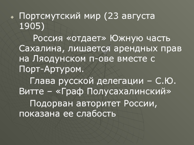 Слайд 14Портсмутский мир (23 августа 1905)