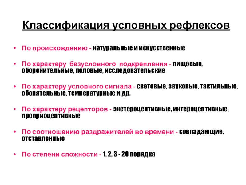 Слайд 70Классификация условных рефлексов