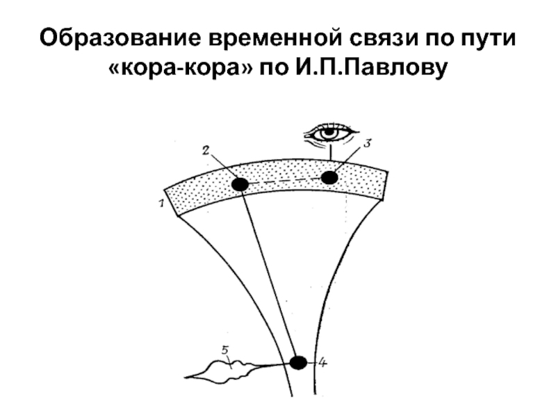 Слайд 73Образование временной связи по пути «кора-кора» по И.П.Павлову