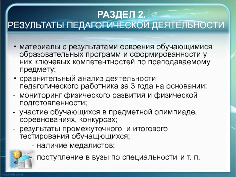 материалы с результатами освоения обучающимися образовательных программ и сформированности у них ключевых компетентностей по преподаваемому предмету;