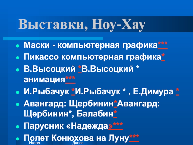 * - переход на соответствующую страницу в Интернет