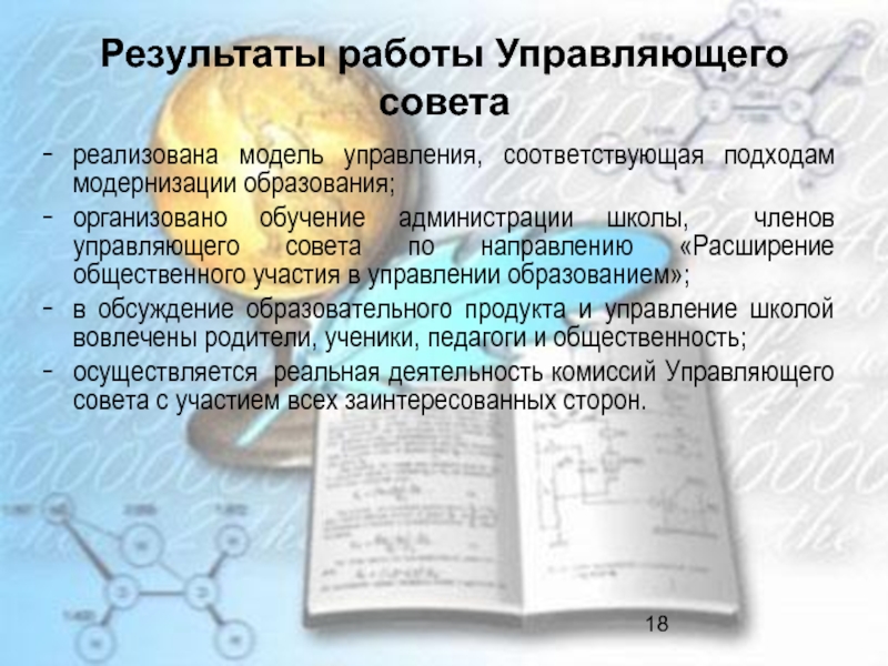 Слайд 18Результаты работы Управляющего совета