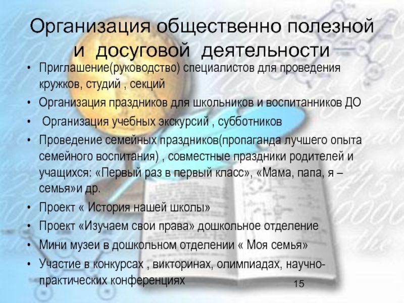 Слайд 15Организация общественно полезной и досуговой деятельности