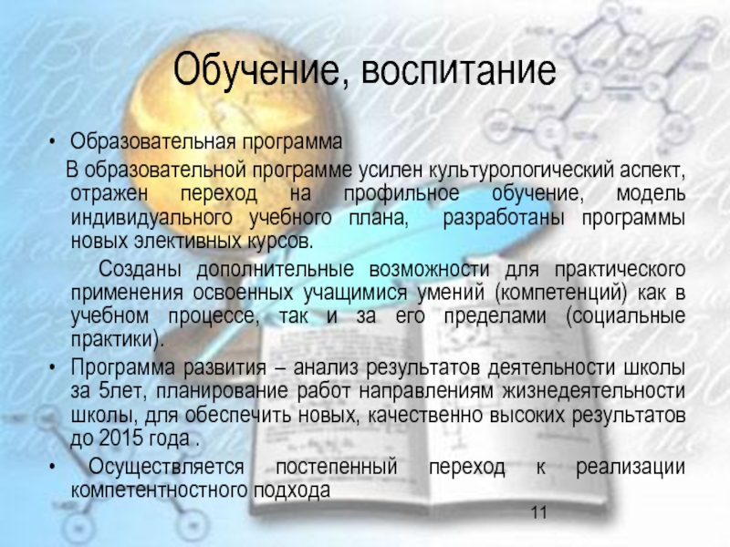 Слайд 11Обучение, воспитание