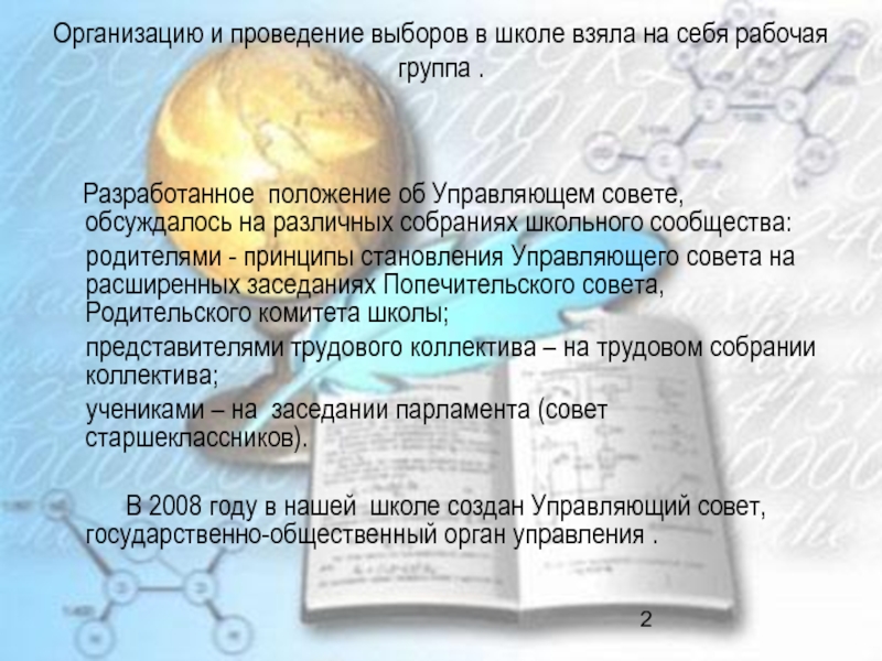 Слайд 2Организацию и проведение выборов в школе взяла на себя рабочая группа