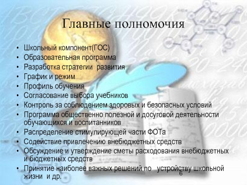 Слайд 6Главные полномочия