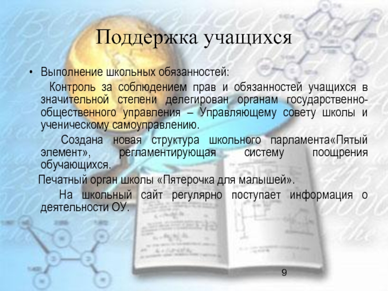 Слайд 9Поддержка учащихся