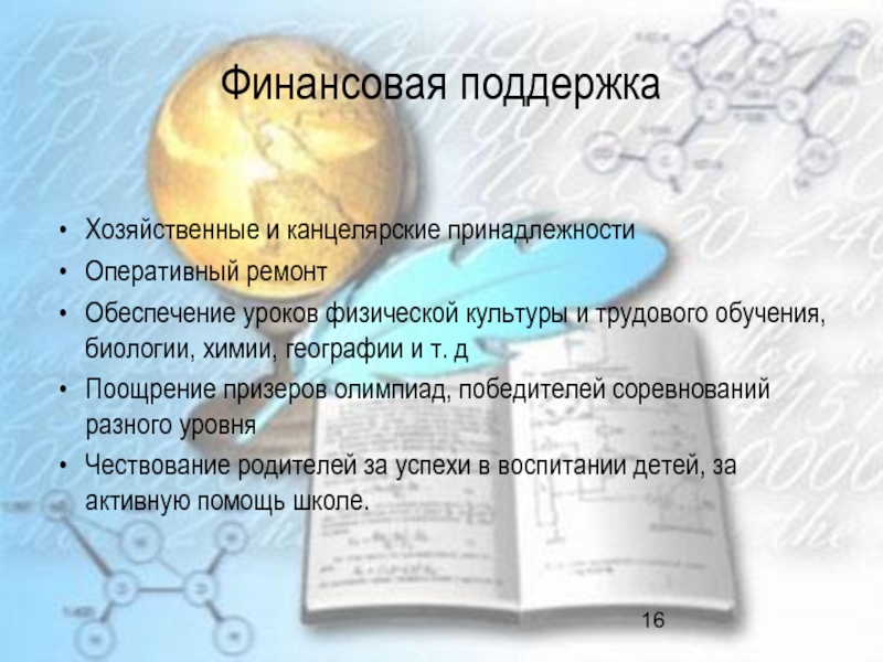 Слайд 16Финансовая поддержка