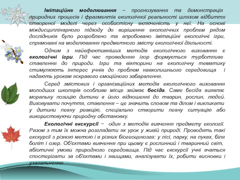 Слайд 13 Імітаційне моделювання – прогнозування та демонстрація природних процесів і фрагментів екологічної