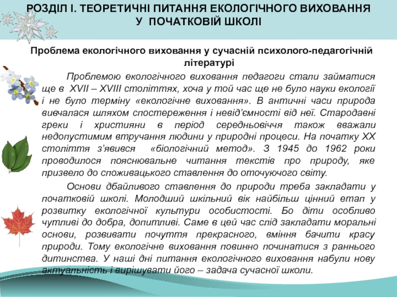 Слайд 7РОЗДІЛ І. ТЕОРЕТИЧНІ ПИТАННЯ ЕКОЛОГІЧНОГО ВИХОВАННЯ