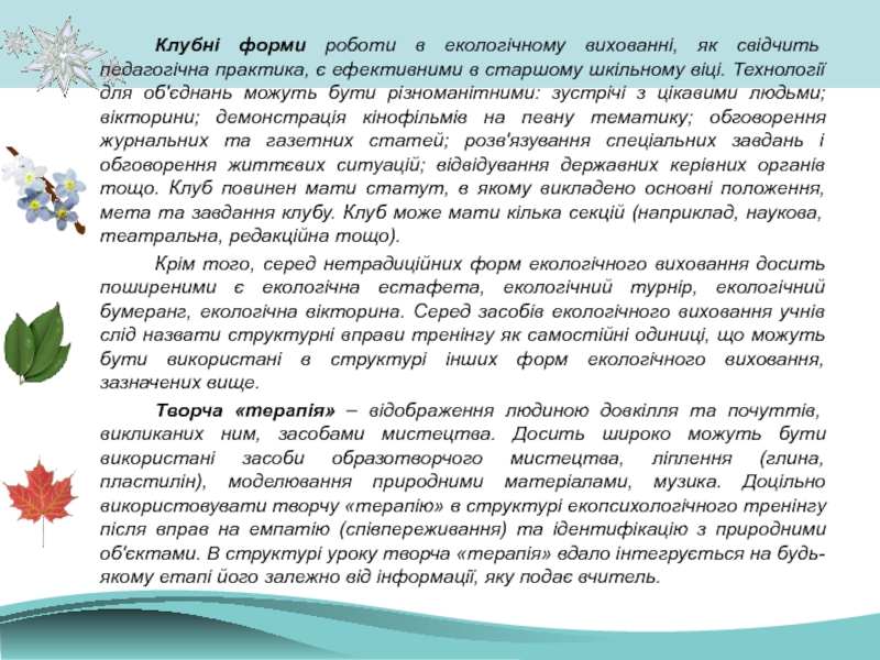 Слайд 12 Клубні форми роботи в екологічному вихованні, як свідчить педагогічна практика, є