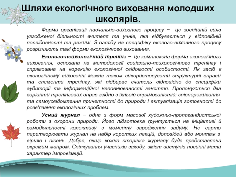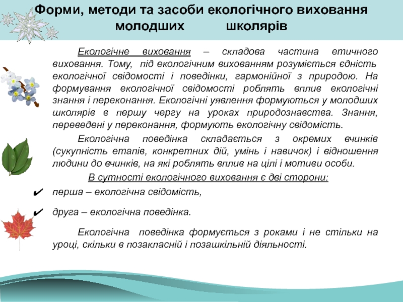 Слайд 8Форми, методи та засоби екологічного виховання молодших