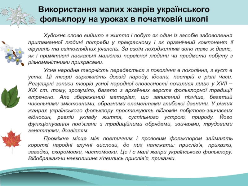 Слайд 19Використання малих жанрів українського фольклору на уроках в початковій школі