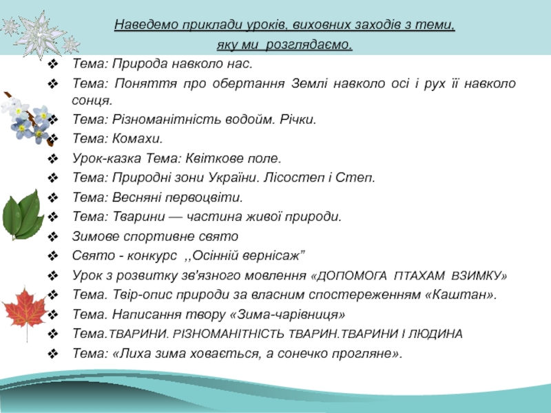Тема. «ПРИРОДА НАВКОЛО ТЕБЕ»