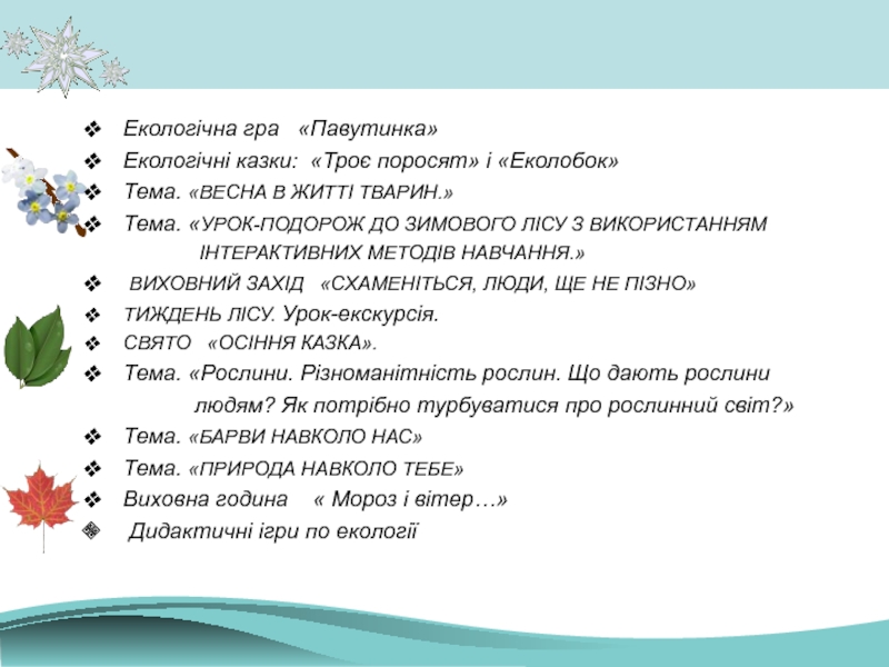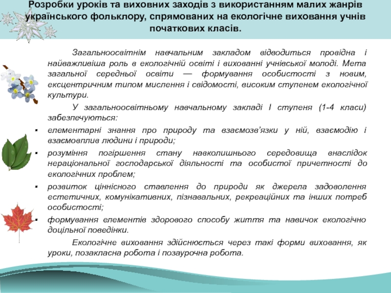 Розробки уроків та виховних заходів з використанням малих жанрів українського фольклору, спрямованих на екологічне виховання учнів початкових класів