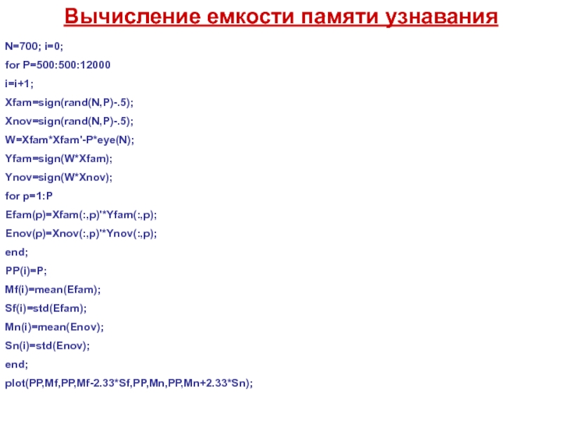 Максимальное число образов, которые могут быть предъявлены сети Хопфилда и затем с ошибкой менее 1% узнаны как знакомые равно 0.023N2 против числа 0.145N, которые могут быть запомнены сетью с возможностью последующего полного воспроизведения1.