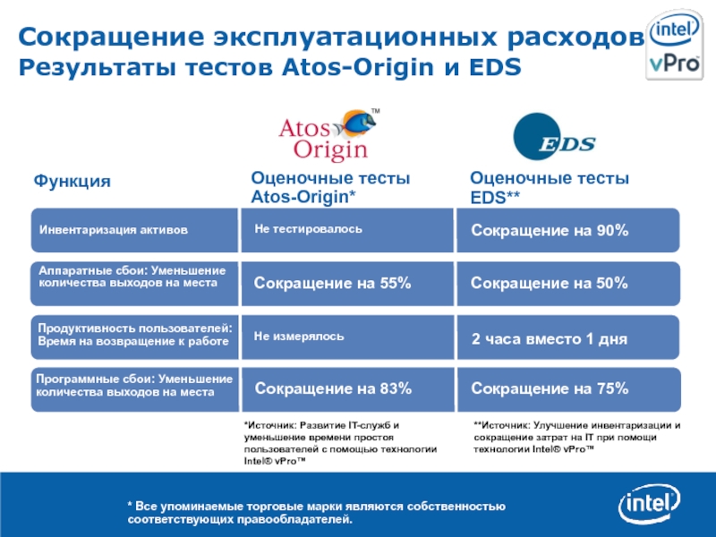 Слайд 30Сравнение Intel® vPro™ и Intel® Centrino® Pro