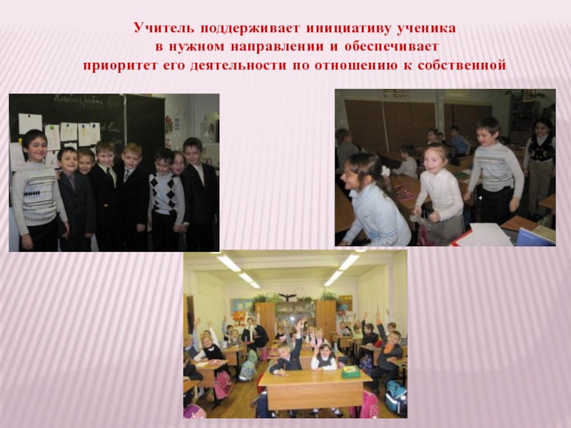 Учитель поддерживает инициативу ученика в нужном направлении и обеспечивает