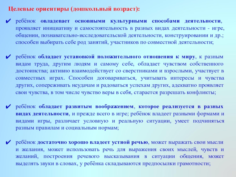 Слайд 27Целевые ориентиры (дошкольный возраст):