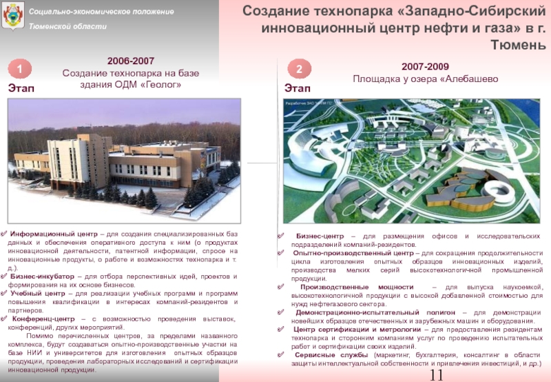 Информационный центр – для создания специализированных баз данных и обеспечения оперативного доступа к ним (о продуктах инновационной деятельности, патентной информации, спросе на инновационные продукты, о работе и возможностях технопарка и т.д.).