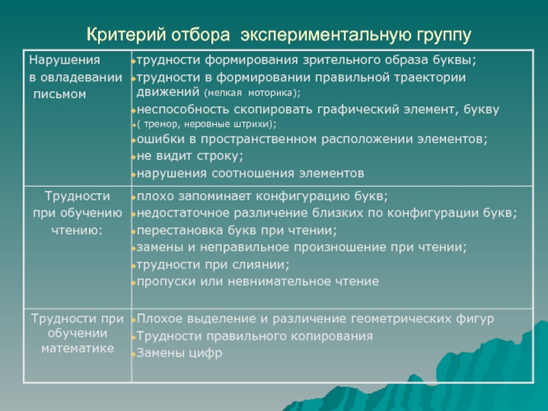 Слайд 9Критерий отбора экспериментальную группу