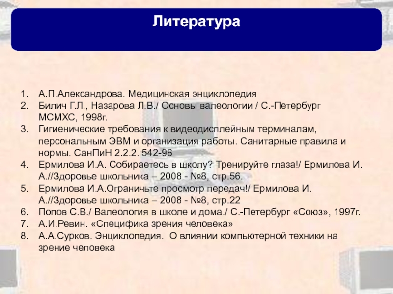 А.А.Сурков. Энциклопедия. О влиянии компьютерной техники на зрение человека