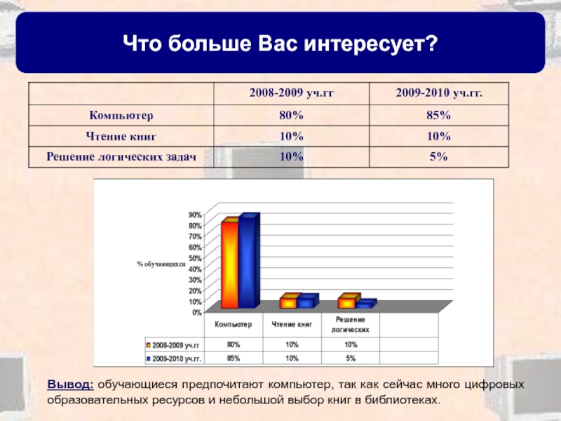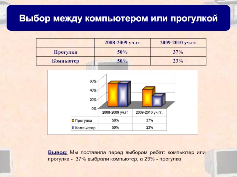Вывод: Мы поставила перед выбором ребят: компьютер