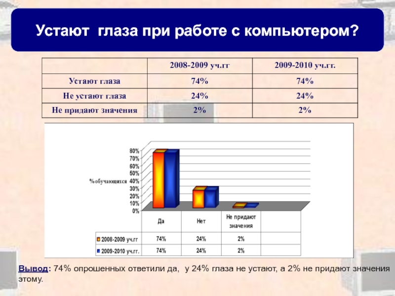 24% глаза не устают, а 2% не придают значения этому.