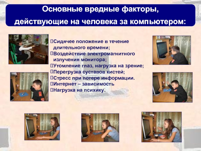действующие на человека за компьютером:
