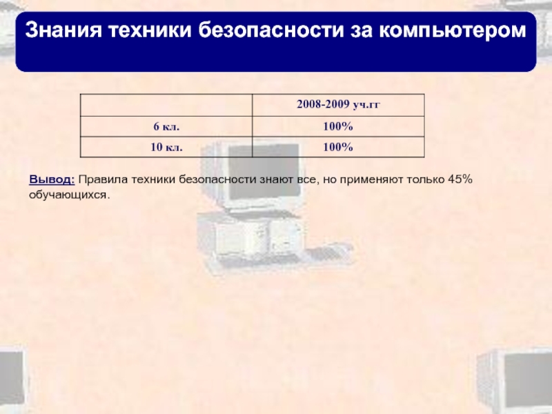 Слайд 29Знания техники безопасности за компьютером