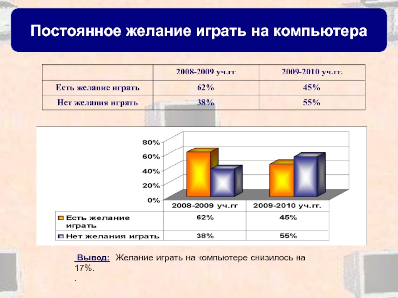 Вывод: Желание играть на компьютере снизилось