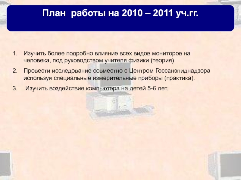Слайд 36План работы на 2010 – 2011 уч.гг.