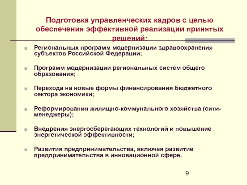 Слайд 8Программа подготовки управленческих кадров как один из инструментов построения инновационной экономики