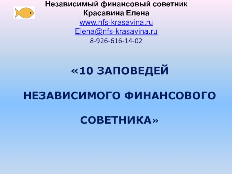 Независимый финансовый советник Красавина Елена www.nfs-krasavina.ru Elena@nfs-krasavina.ru 8-926-616-14-02 презентация