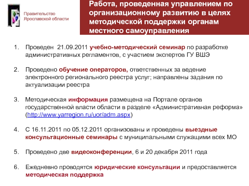 Методическая информация размещена на Портале органов государственной власти области в разделе «Административная реформа» (http://www.yarregion.ru/uor/adm.aspx)