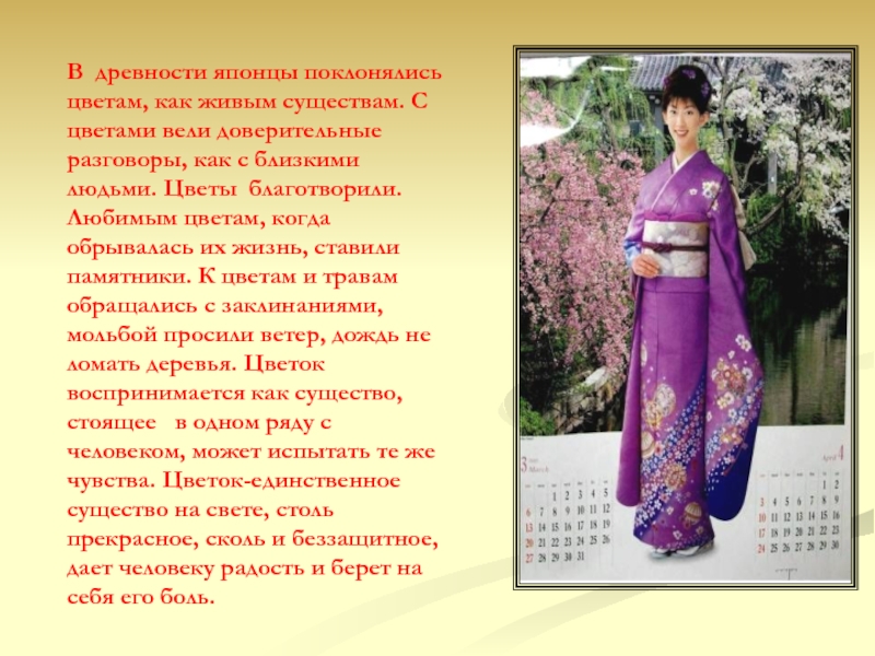 Слайд 9В древности японцы поклонялись цветам, как живым существам. С цветами вели