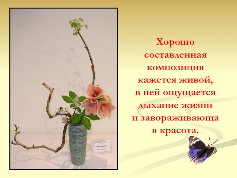 Слайд 14Хорошо составленная композиция кажется живой, в ней ощущается дыхание жизни и завораживающая красота.