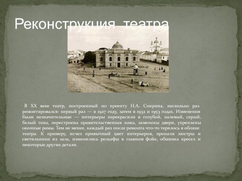 России, который в 2010 году отметил 260-летие. История театра, по преданию, восходит к кожевенному амбару, в котором два с половиной века назад молодой купеческий сын Федор Волков с братьями и друзьями устраивал первые представления своей труппы. Потом Федор выстроил для театра специальное здание, изготовил костюмы, декорации. Слух о молодых ярославцах тогда дошел до императрицы Елизаветы, которая вызвала их в Петербург… С тех пор ярославская «театральная хоромина» на берегу Волги считается корнем, из которого вырос русский профессиональный театр.