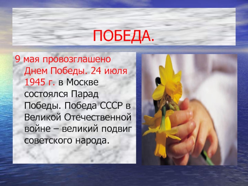 состоялся Парад Победы. Победа СССР в Великой Отечественной войне – великий подвиг советского народа.