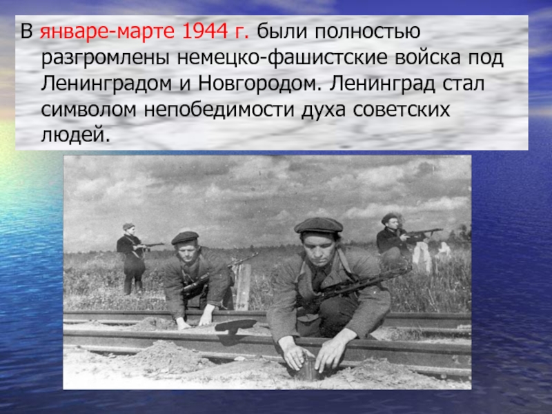 В январе-марте 1944 г. были полностью разгромлены немецко-фашистские войска под Ленинградом