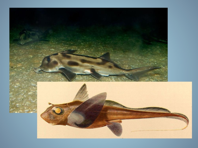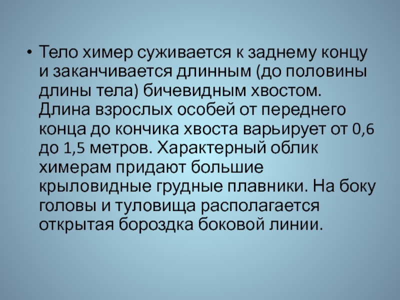 Слайд 31Тело химер суживается к заднему концу и заканчивается длинным (до половины