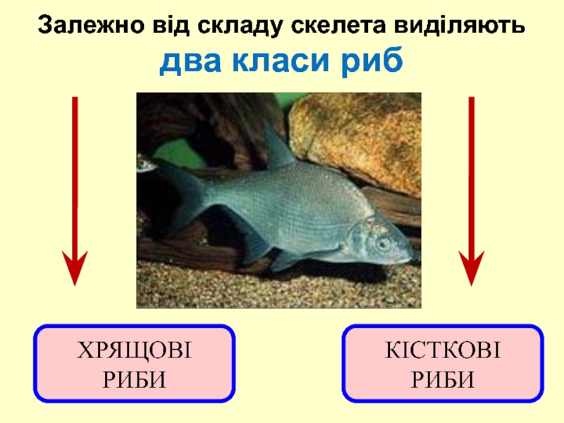 Слайд 5Залежно від складу скелета виділяють два класи риб