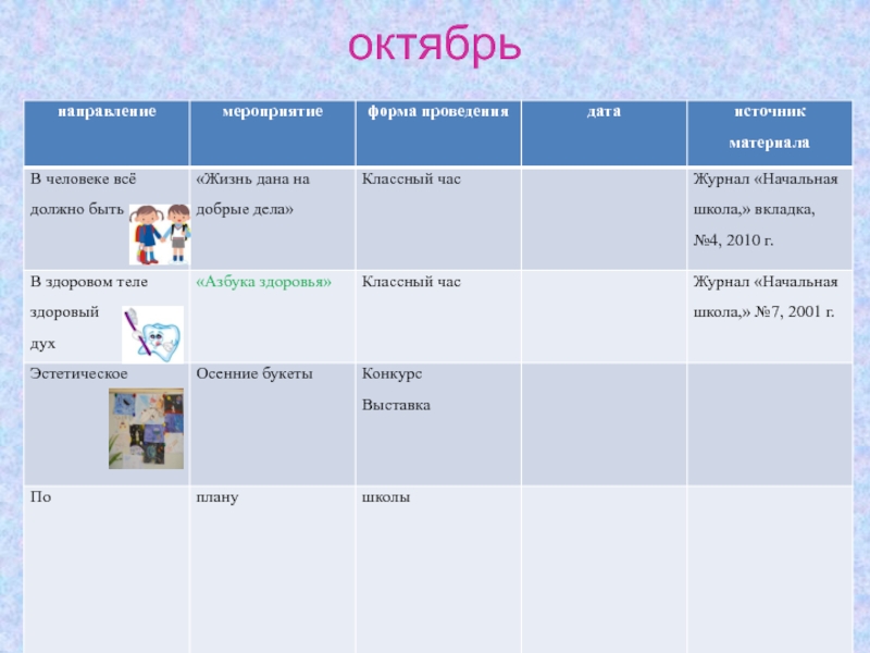 1. Формирования навыков культурного поведение в школе,