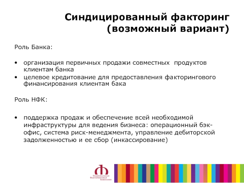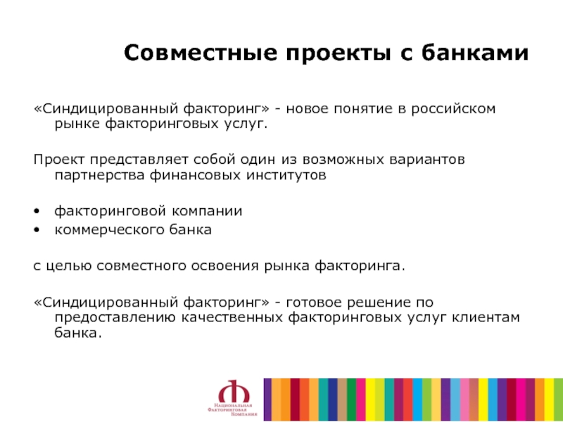 «Синдицированный факторинг» - готовое решение по предоставлению качественных факторинговых услуг клиентам банка.