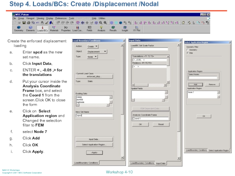 Step 4. Loads/BCs: Create /Displacement /Nodal