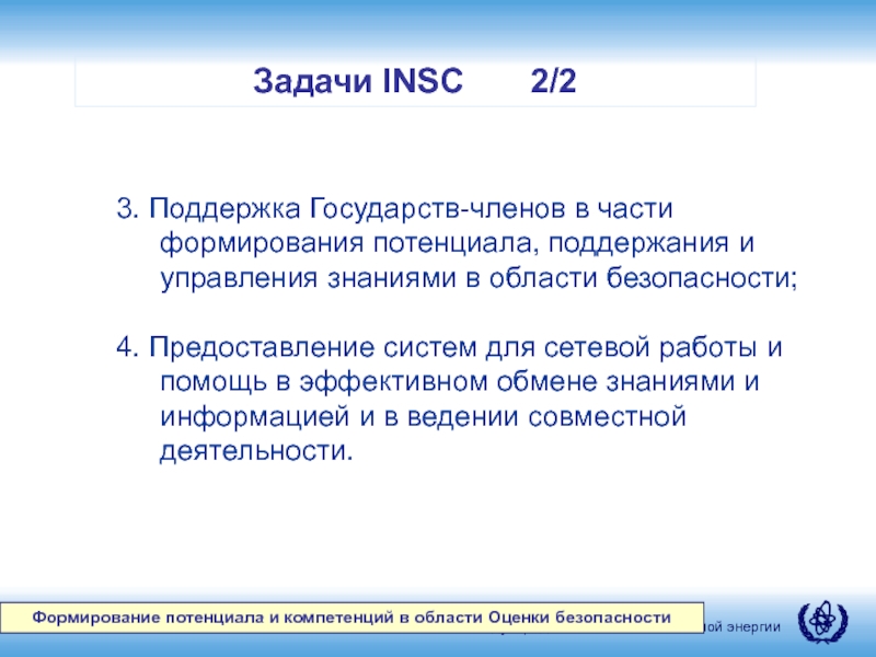 3. Поддержка Государств-членов в части формирования потенциала, поддержания и управления знаниями в области безопасности;