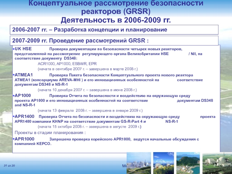 Слайд 31UK HSE Проверка документации по безопасности четырех новых реакторов, представленной