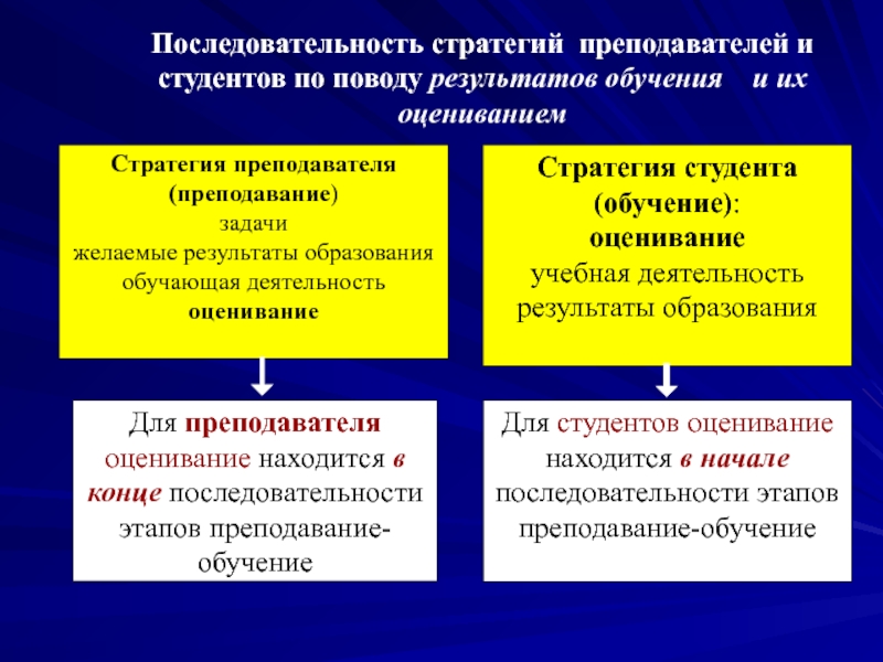 Для преподавателя оценивание находится в конце последовательности этапов преподавание-обучение