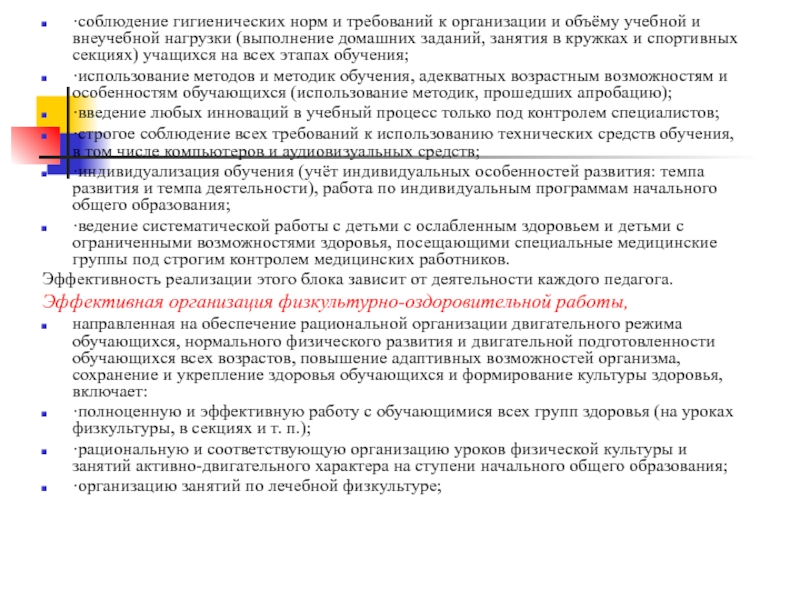 Слайд 15·соблюдение гигиенических норм и требований к организации и объёму учебной и